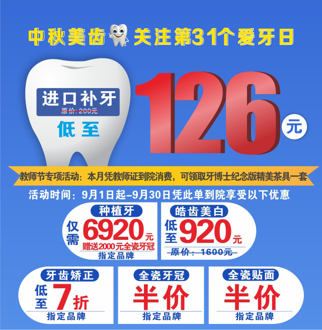 《情浓中秋,喜迎中国第31个爱牙日》牙博士“救牙计划”活动开启! 中秋节,是中国传统节日之一,为每年的农历八月十五,也是我国仅次于春节的第二大传统节日。 中秋团圆节即将来临,正是一家人团圆共享圆月共享满桌佳肴的日子。但对于缺牙的中老年朋友来说,看着满桌的美味佳肴,却“咬不下口,吃